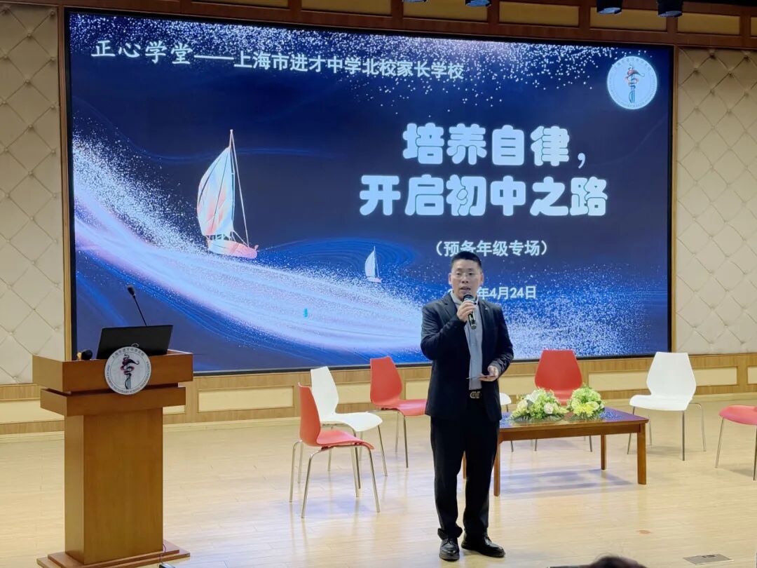 人间四月芳菲盛,家校共育正当时。为凝聚共育合力,助力学生自律品格的养成。4月24日,上海市进才中学北校预备年级以“培养自律,开启初中之路”为主题开展家长学校活动。