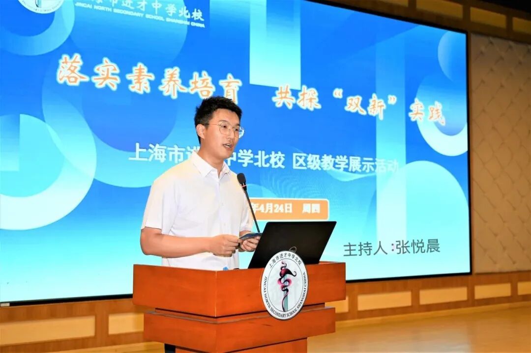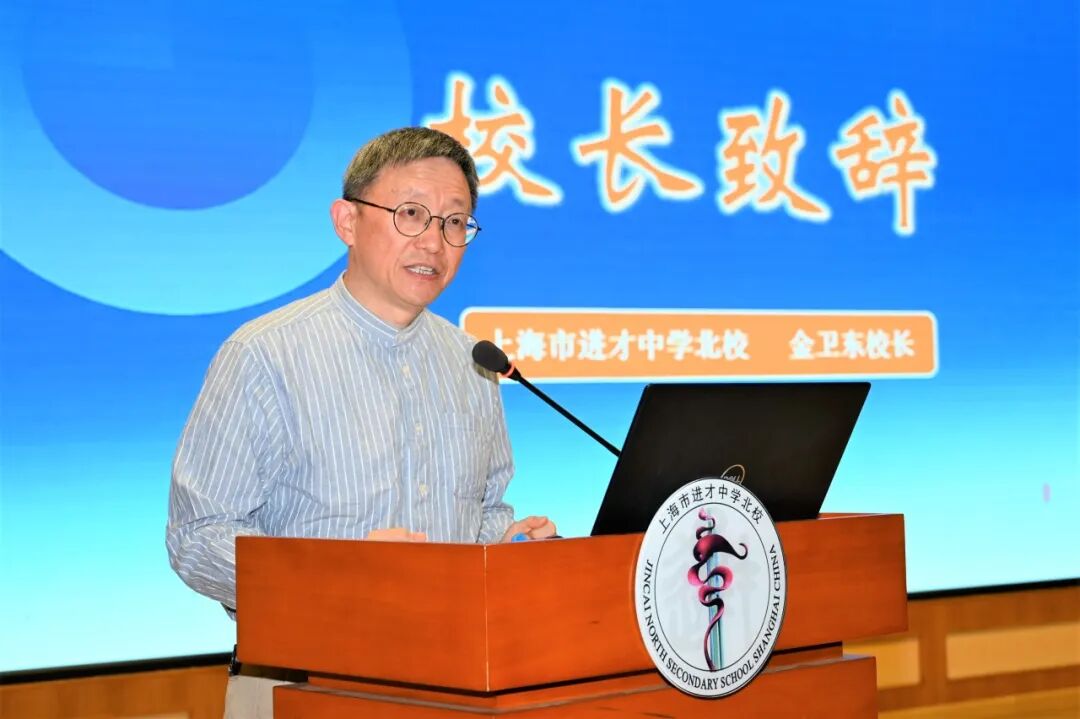 上海市进才中学北校金卫东校长系统阐述了学校“田园养正”的办学理念,指出学校正通过“三位一体”的创新路径深化教育教学改革:一是构建特色课程体系,二是推进数智技术赋能,三是强化教师专业研修。金校长肯定了四位90后青年教师带来的展示课,认为这些课堂既传承了各学科教育教学的优良传统,又生动诠释了"守正创新"的教育哲学。这些课例不仅展现了青年教师的教学风采,更为新时代学生核心素养的培养提供了可借鉴的实践范式。