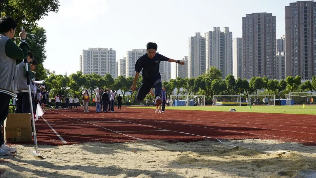 运动会赛场上,新疆班学子宛如闪耀的明星。在跑道上,他们如离弦之箭,风拂过发梢,眼神中满是坚毅,向着终点全力冲刺,每一步都承载着梦想与拼搏。在跳远沙坑旁,他们如展翅雄鹰,助跑、起跳,在空中划过优美弧线,沙粒飞扬间尽显力量与技巧。