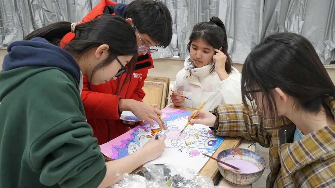 学校配备了专业的艺术教师团队,他们以精湛的专业技能和饱满的热情,引领学生步入艺术的殿堂。美术教室里,育才新疆班学子们用画笔描绘出五彩斑斓的梦想世界;社团课上,学子们能根据自己的兴趣和特长自由选择书法、绘画、合唱等项目,充分挖掘自身潜力;学校定期举办的校园艺术活动,如迎新晚会、社团展示、大地涂鸦等,为新疆班学子们提供了展示艺术才华的舞台。