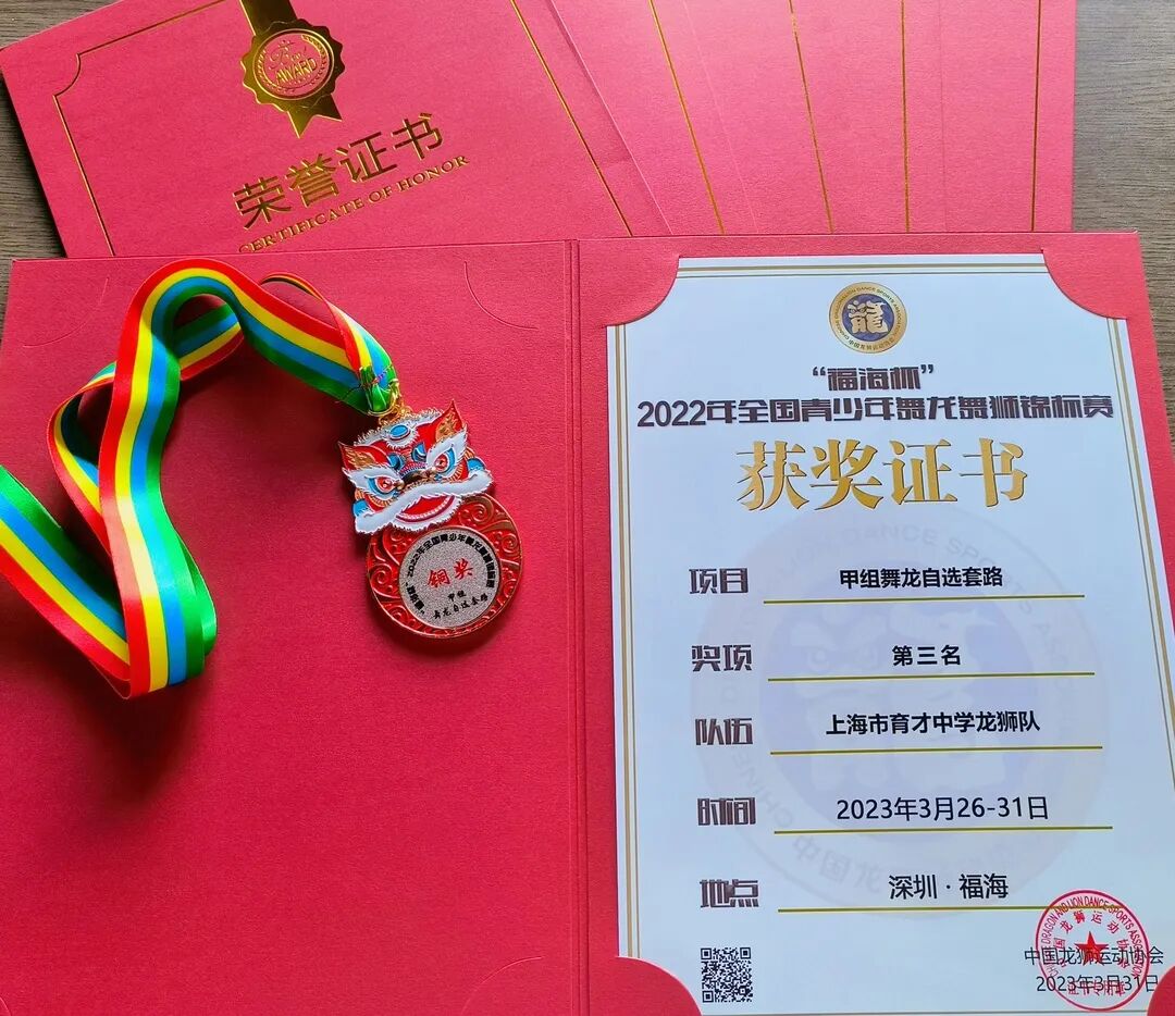 育才舞龙队由维吾尔、汉、哈萨克、回等多个民族组成的,他们在李文康老师的精心指导下,从初学到掌握要领,再到动作娴熟,最后出神入化。育才龙队实力非凡,不仅取得全国锦标赛第三名的好成绩,而且也一举斩获“三林杯”长三角龙狮精英赛金奖及上海市学生龙文化全能赛一等奖。