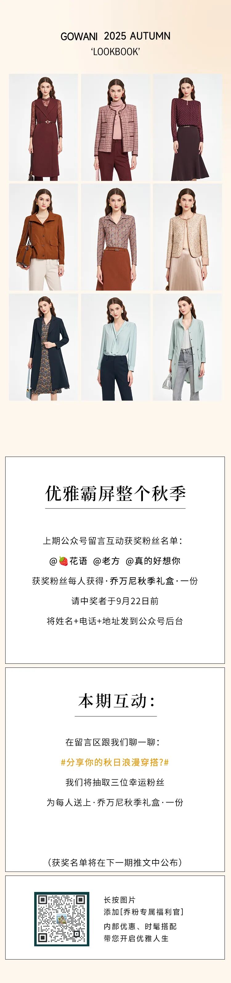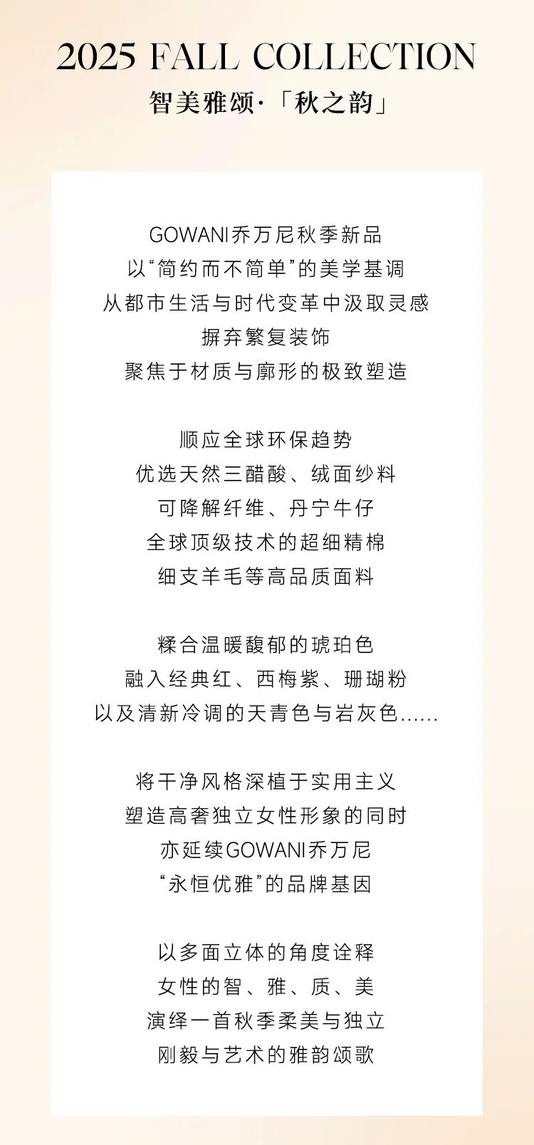 文章内容来源于公众号:乔万尼时尚女装,点此可查看原文,内容版权归相关企业所有,本网站仅供交流学习。若涉及版权问题或存在侵权情况,请及时与我们联系,我们将第一时间进行删除处理。