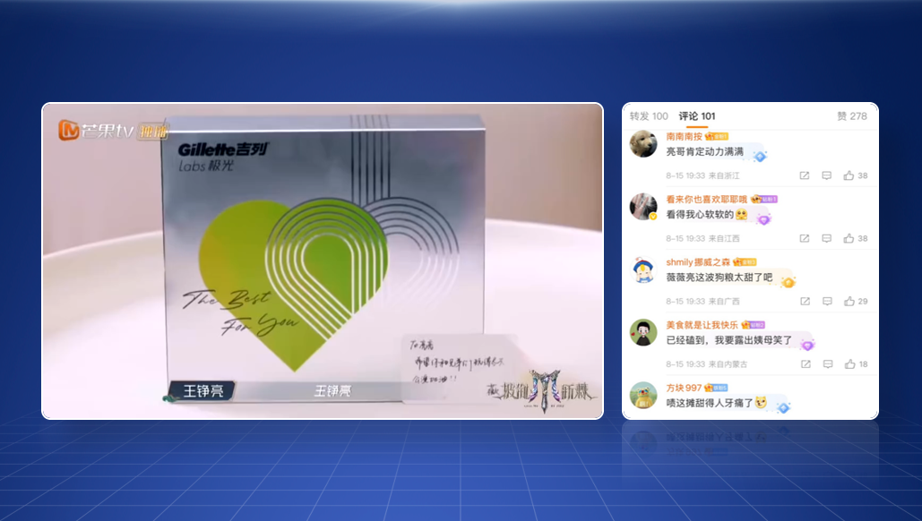 再比如现在正在热播的《披荆斩棘2025》,吉列作为赞助品牌,希望每位哥哥能够在舞台上超越自己,呈现最佳状态。通过产品植入综艺节目,我们突破时代算法,触达更多消费者。