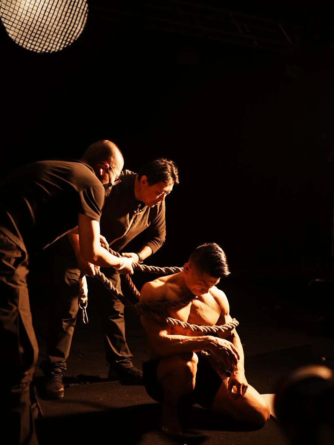 拍摄现场,导演正在指导演员完成版画《怒吼吧!中国》中的人物造型
