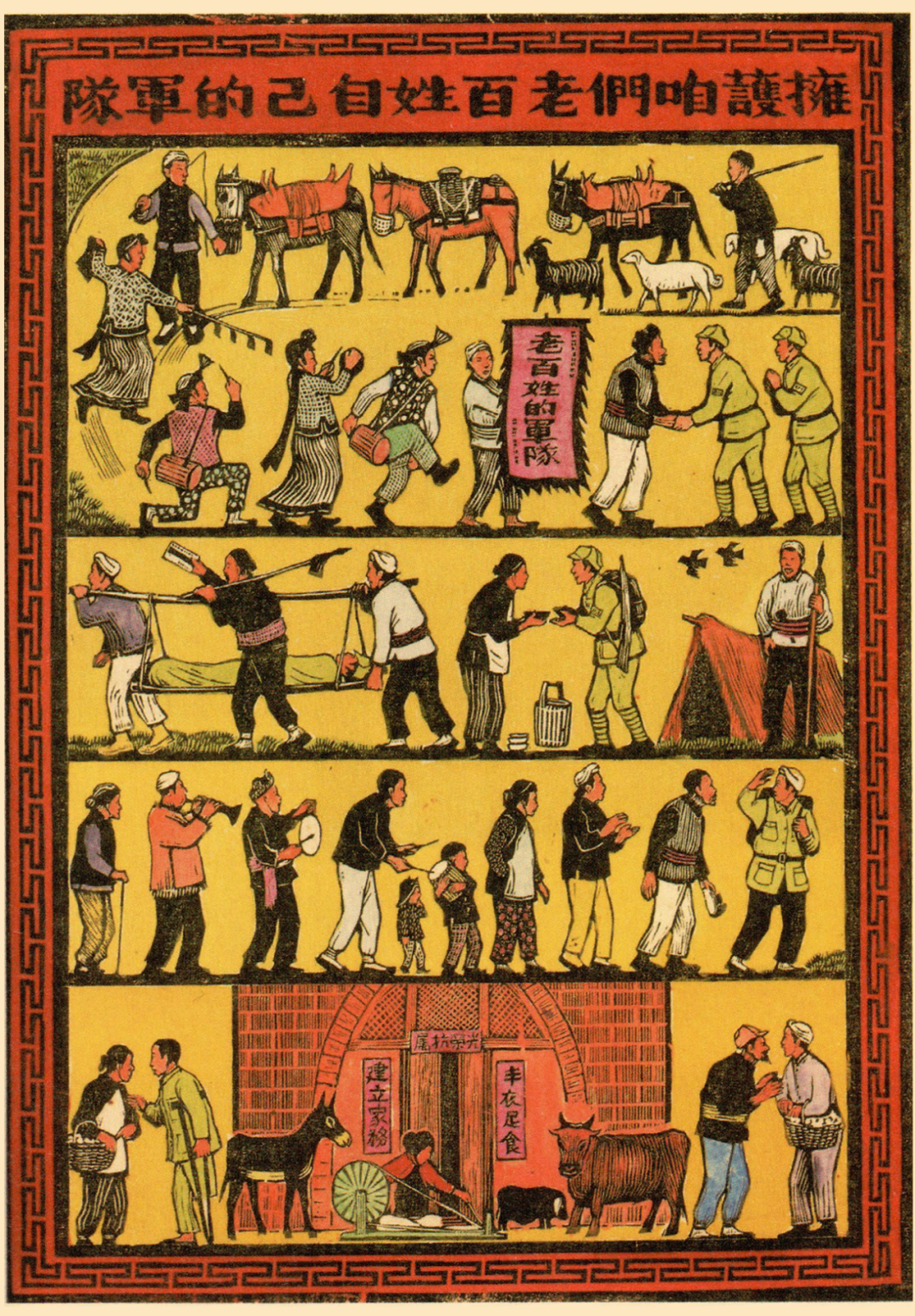《拥护咱们老百姓自己的军队》版画原图与AI动态视频