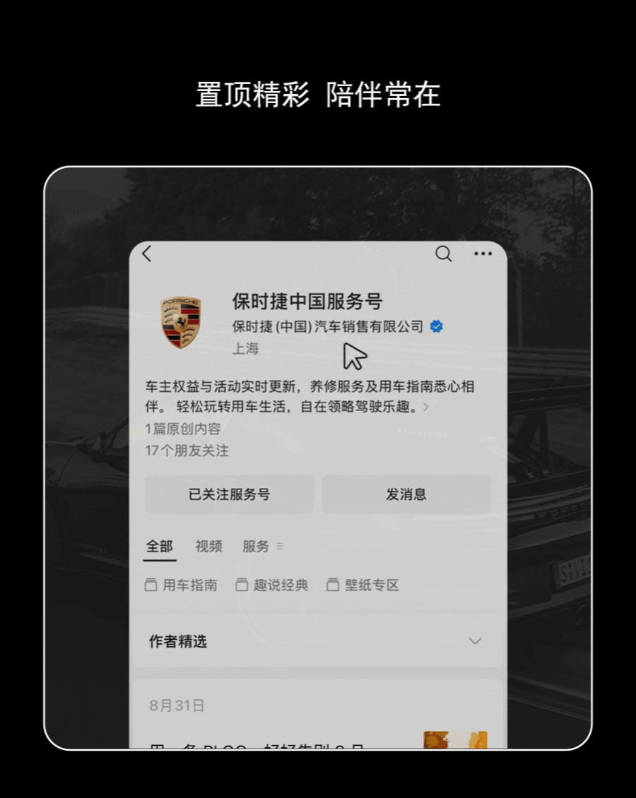 文章内容来源于公众号:保时捷中国服务号,点此可查看原文,内容版权归相关企业所有,本网站仅供交流学习。若涉及版权问题或存在侵权情况,请及时与我们联系,我们将第一时间进行删除处理。