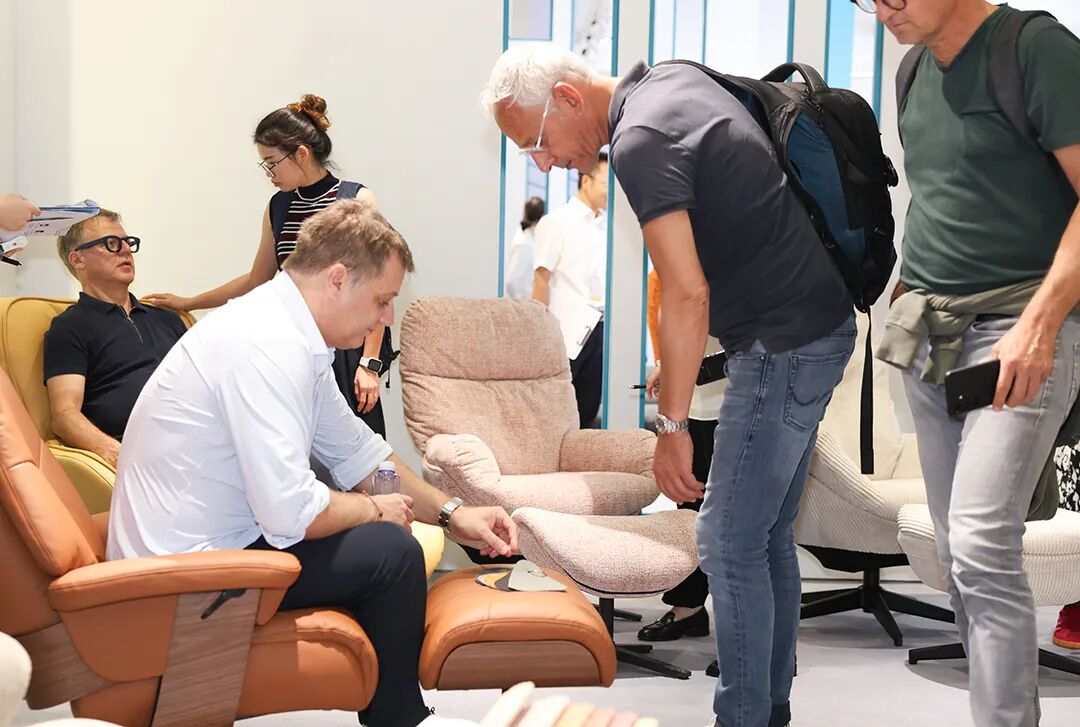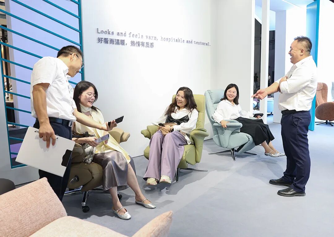 永艺股份民用展(展位号5.1A03),同样展现出强大的创新实力。公司将科技与艺术融入设计,推出“零重力”、“零搓背”等多款风格各异的休闲椅产品,满足消费者对舒适家居生活的追求。