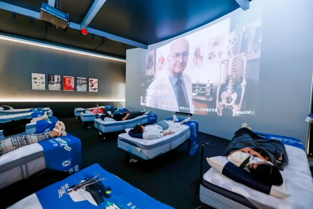 丝涟此次的展位设计独具匠心,以 “睡眠实验室” 为灵感,打造了一个集科技感与舒适感于一体的沉浸式体验空间。步入展位,仿佛置身于一个神秘的睡眠探索世界,通过互动装置、多媒体展示等形式,消费者可以深入了解丝涟的品牌历史、核心技术以及产品研发过程。