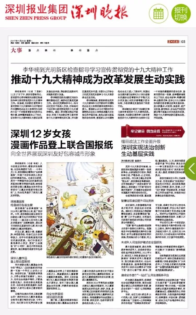 同年,杨梅红学生龚一可作品《友好星球》登上联合国儿童基金会发布的首份“儿童友好型城市倡议报纸,展示深圳“儿童友好型城市”形象。