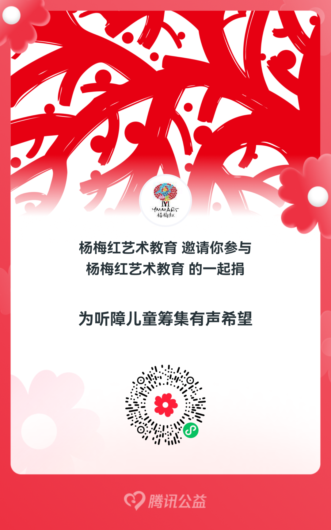 除了发起艺术互动,杨梅红艺术教育本次还参加了腾讯“久久公益节”的一起捐活动。