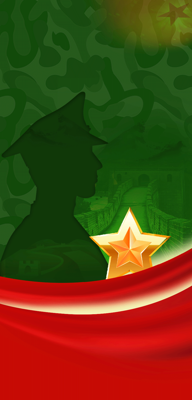头顶军帽上的五角星军徽正悄悄的散发着光芒——虽平凡却耀眼,像是每日照常升起的太阳,也像是在战场与边疆保家卫国的中国军人。