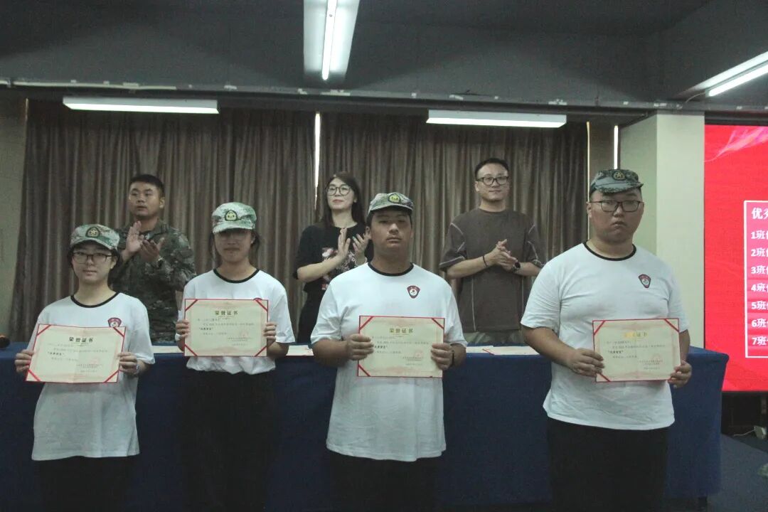 荣光的背后,是日夜淬炼的勋章。结营仪式上,优秀营员昂首登台,以挺拔姿态诠释青春担当;荣获优秀营队和精神风尚奖的班级既体现了军政训期间纪律严明、作风过硬的优良风貌,也彰显了积极向上、奋勇争先的集体精神。聚光灯照亮的不只是奖状,更是每一滴未被辜负的汗水。
