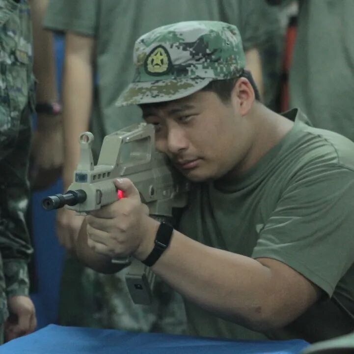 “枪支构造就像人体的骨骼——准星是眼睛,扳机是手指,枪托是支撑。”教官拆解模型枪,一边讲解射击要领。“准星,中心,靶心,三点一线!”“三点一线”的背后,是专注与坚持。在模拟射击体验环节,第一次握住沉甸甸的训练枪时,不少同学既激动又紧张。“9环、10环……”同学们给神枪手们报以欢呼和掌声。