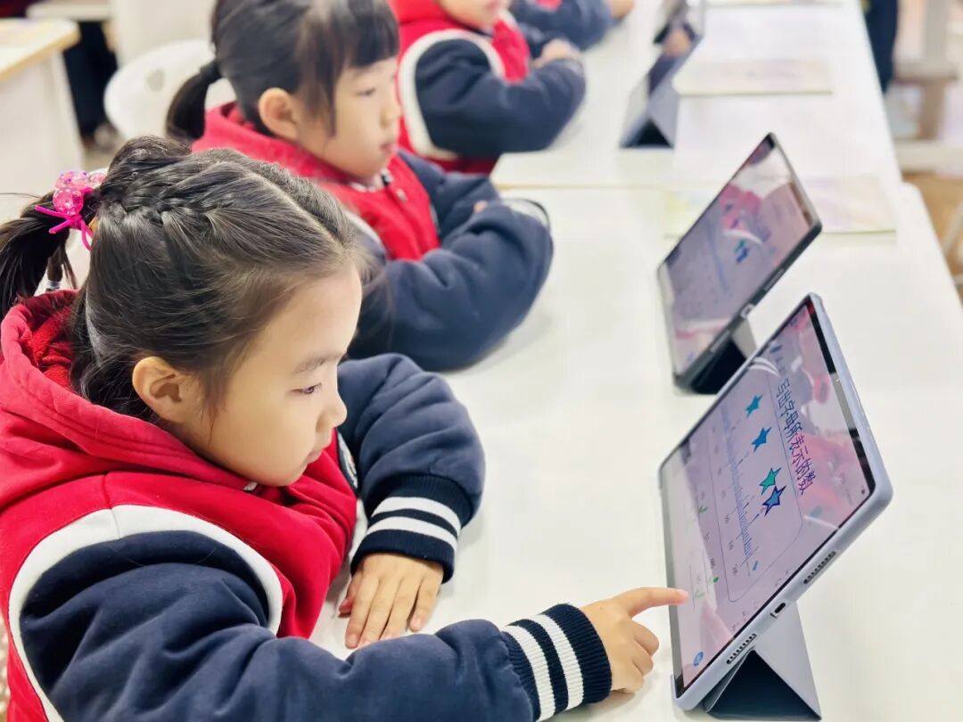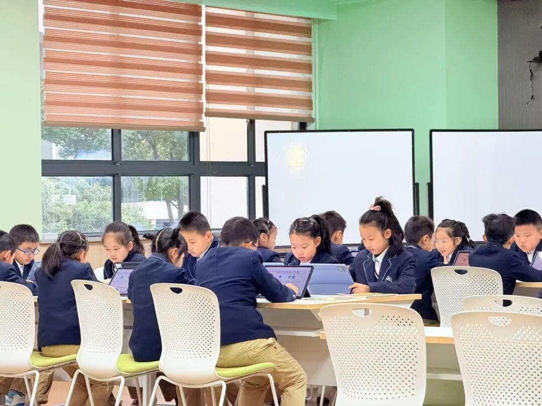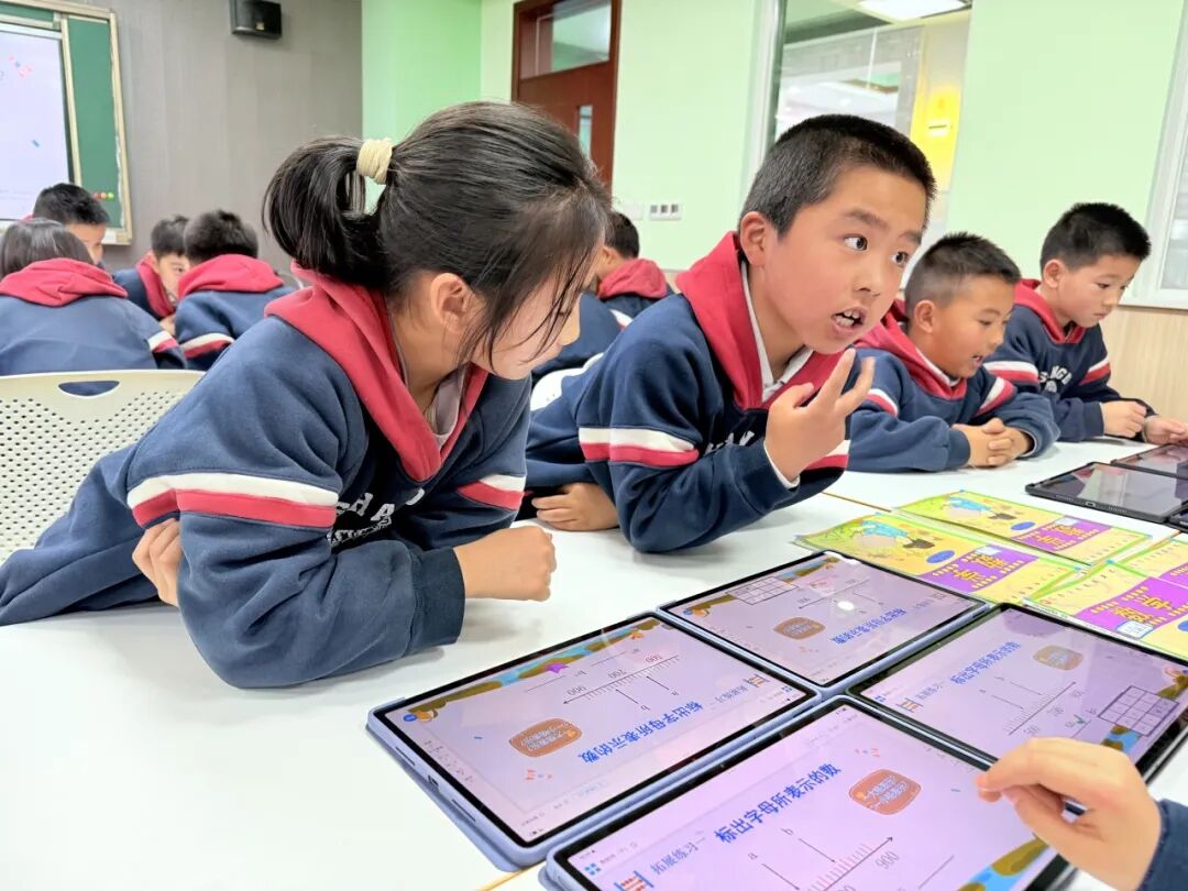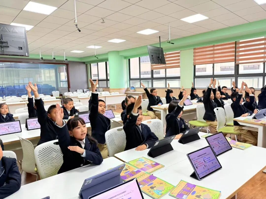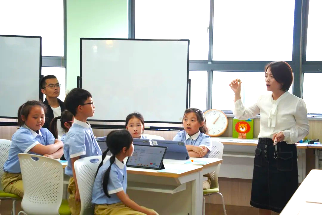 在平台助力下,尚德实验学校的小学数学课堂呈现出 “屏幕与黑板共生、数据与思维共振” 的新样态——孩子们在平板电脑上答题探索数学奥秘,在小组讨论中借助AI工具印证猜想,教师则手持终端游走于学生中间,用精准的追问激活深层思考。这些生动的课堂瞬间,正是 “以学习者为中心” 理念下技术与教育深度融合的最佳呈现,让学习真正成为学生主动探索、思维生长的过程。