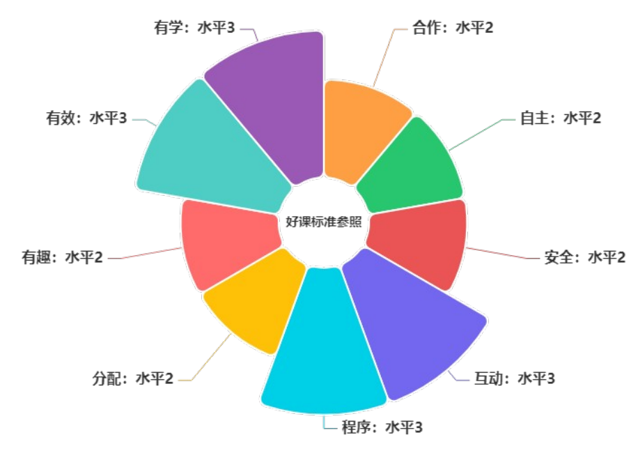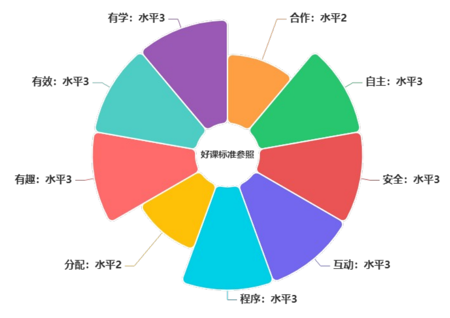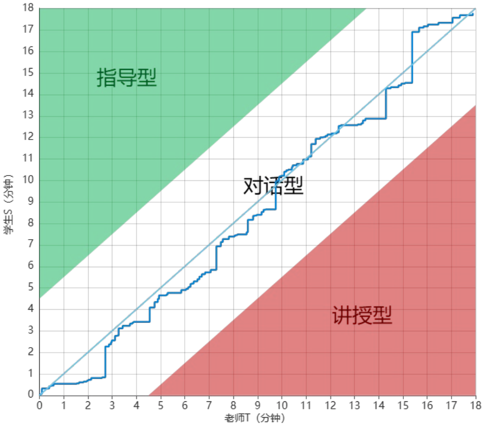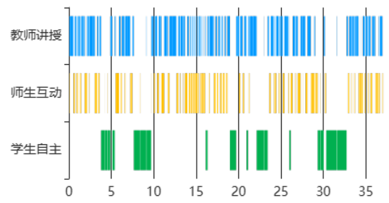 学生参与:借助课堂动态分布图识别课堂中师生活动占比 ,通过重构教学设计,拓展学生自主探索、合作研讨空间,引导学生主动发现问题、解决问题,将课堂的主动权充分还给学生;