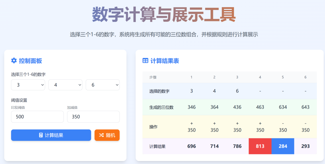在二年级数学《数学广场—加与减》一课中,学生根据流程图完成计算游戏后,6个学习小组现场掷数点块,随机生成约36道三位数加减法计算结果需要即时验证,传统人工验算环节虽对培养学生计算能力具有重要意义,但在课堂场景下集中验证 36 道题的计算结果,需耗费大量课堂时间且流程繁琐,一定程度上影响了教学环节的连贯性。基于此,我们自主设计了AI 实时验算工具,学生只需输入随机用数点块掷出的三个数字,系统即可在 0.01 秒内完成结果校验,为后续教学环节及时提供生成性教学资源。