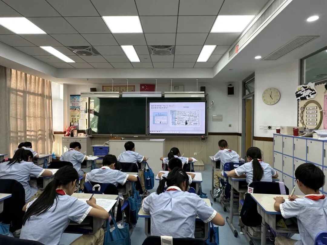 基于学生认知水平差异,教师精选分级绘本:一至三年级以图文并茂的韵律绘本为主,通过角色模仿、情境复现夯实基础词汇;四五年级聚焦故事阅读,借助思维导图梳理情节脉络,引导学生用英语分析人物特征。老师们以互动共读为径,融合预测提问与思维导图,点燃学生阅读热情,助力词汇积淀与语感培养。分层教学让每个学生都能在"最近发展区"获得成长。