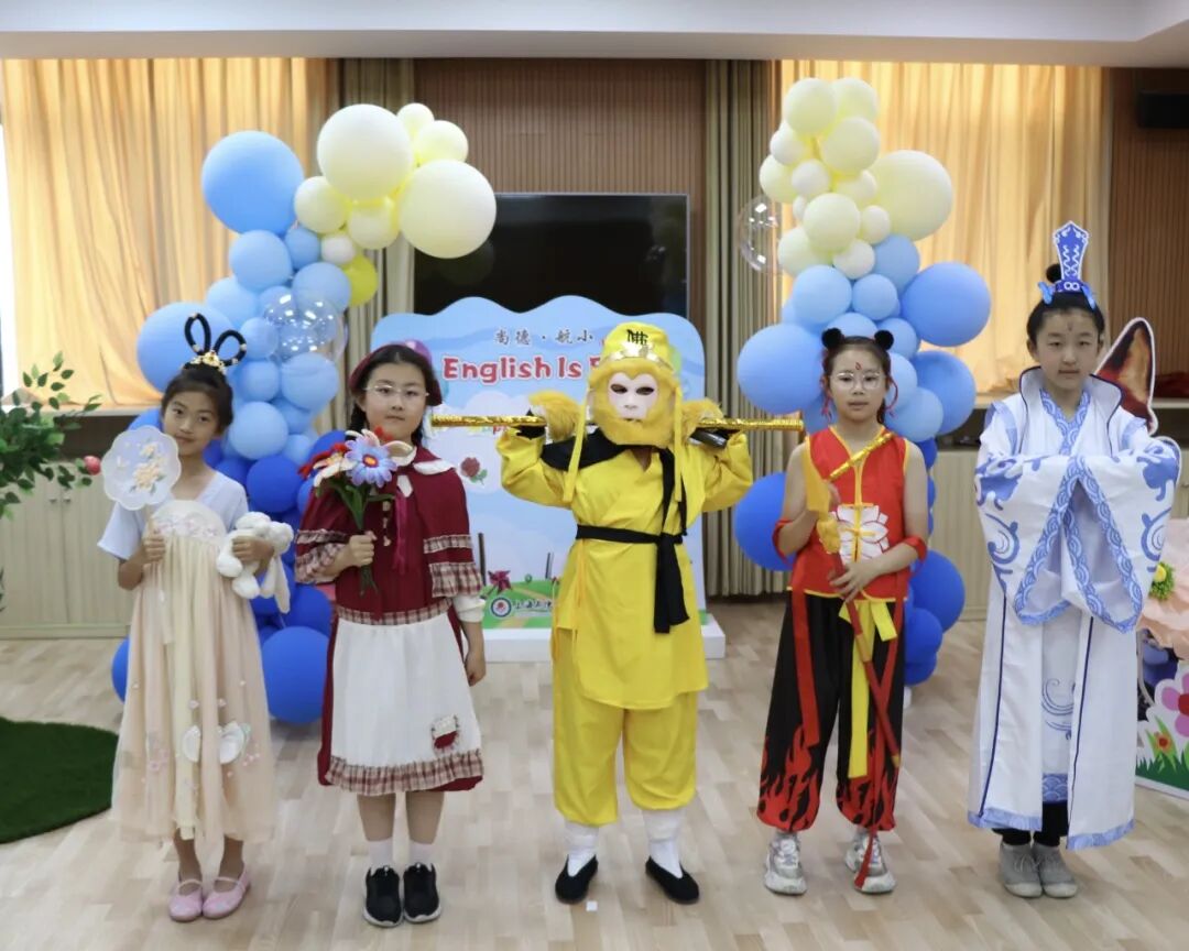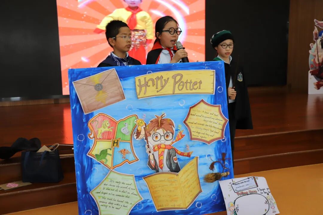 让孩子们真正地“走进”书本,感受阅读的魅力,老师们还策划了一场图书角色扮演活动。在活动过程中,学生们积极投入,化身为自己最喜爱的书中角色,通过亲身演绎的方式深入体验故事情节,精准把握人物情感,从而在阅读过程中收获了更多的快乐体验。语言能力与综合素养深度融合,地道的语音语调、细腻的情感表达,个性化的创意,充分彰显语言学习的成果。