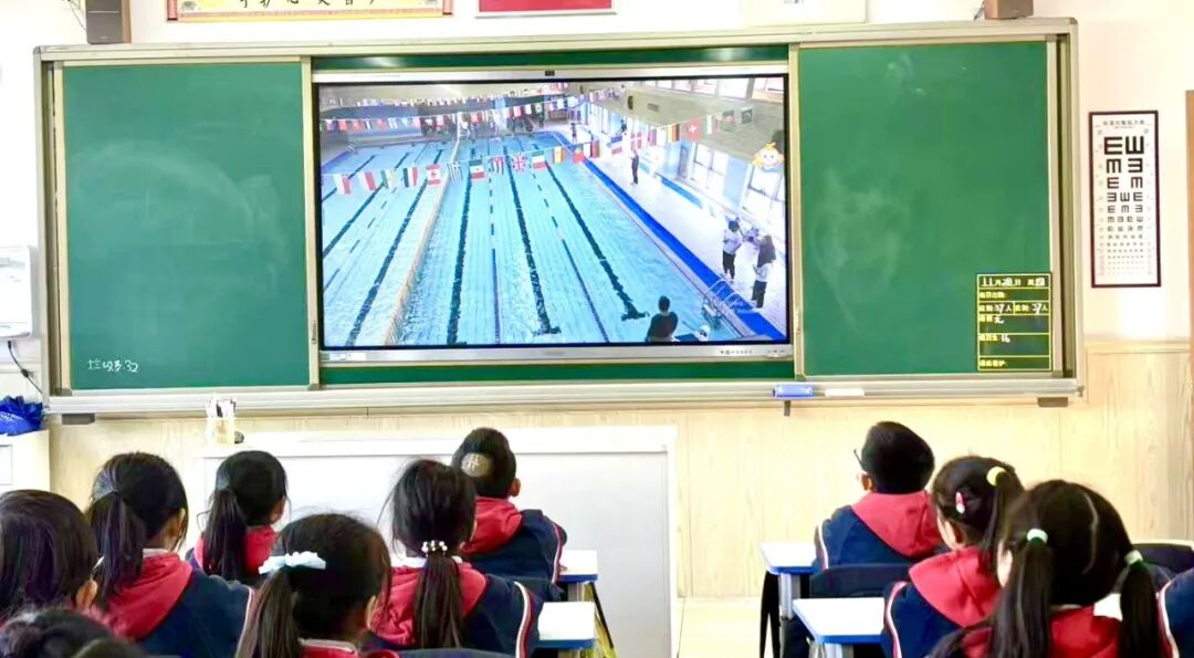 尚德精心设计了许多小型赛事,包括羽毛球和游泳接力赛。赛场上,运动健儿们挥洒汗水,不放弃一分一秒的机会,全力以赴争取胜利。本次游泳接力赛全程同步直播,比赛现场和教室内的氛围同样紧张,孩子们簇拥在大屏幕前,聚精会神地观看着比赛,聆听着解说员的讲解,为赛场上的健儿们加油助威。