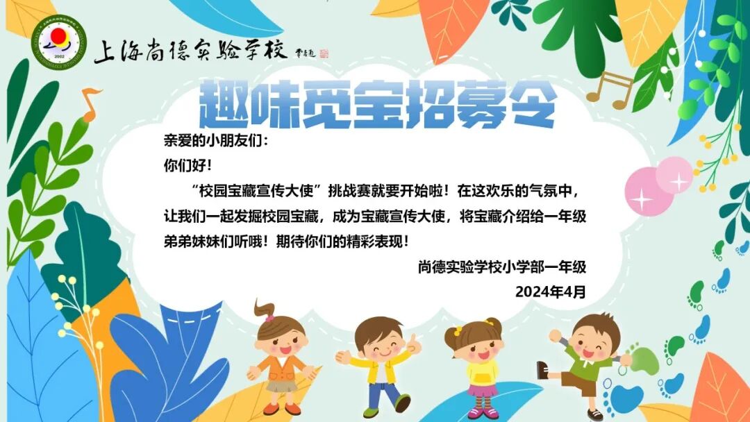 亲爱的孩子们,幼儿园的弟弟妹妹要来参观校园。为了让他们更快了解学校,我们将举办“校园宝藏宣传大使”挑战赛,邀请你们来当解说员哦!