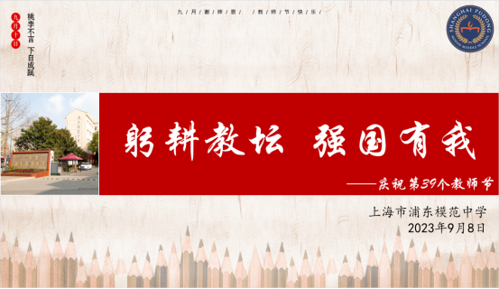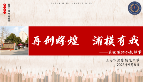 金秋九月,云净天明,丹桂飘香。9月8日下午,“躬耕教坛,强国有我。再创辉煌,浦模有我——上海市浦东模范中学庆祝第39个教师节暨表彰大会”在我校小剧场隆重举行,全体教职工欢聚一堂,喜迎这个属于自己的节日。![]()