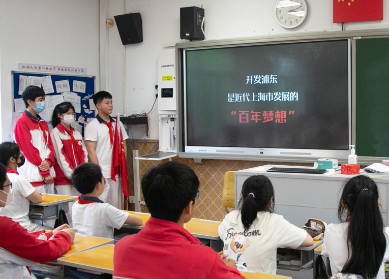 2023年6月5日,浦东模范中学少先队开展了以“十万少年看浦东——我与引领区共成长”为主题的队会。 各个中队在中队委员会的组织和中队辅导员的指导下,做了充分的准备,以讲故事、观看视频等形式,回顾浦东开发开放过程中的历史事件和先锋人物,多方位展示祖国和浦东的发展。![]()