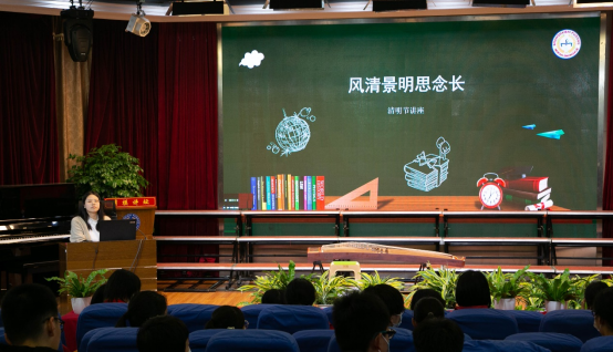 4月4日,学校蔡玉洁老师借清明时节,以“风清景明思念长”为主题,与同学们分享了清明的起源与演变、清明节俗、清明之思。![]()