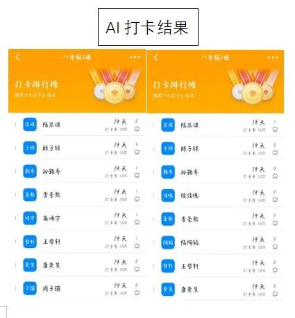 校级模范:AI打卡获得坚持之星,并至少每周交三次锻炼视频