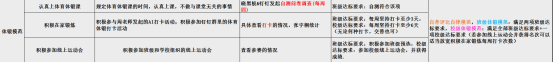 班级:1. 一项体育打卡全勤其它不低于50% ,在班级圈上交视频记录