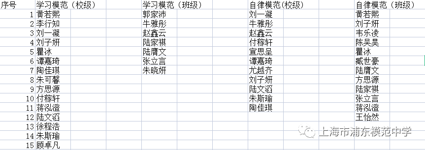 校级:戴乐芊、甘雨萱、罗芳琳、任歆瑶、沈芯怡、王睿琰、王羽萁、王羽清、王玥颖、许顾勤、姚卿尘、张楚涵、张梓玥、郑渃语、郑添乐、龚哲宇、胡禹漕、黄文博、李润安、郑易、朱三山