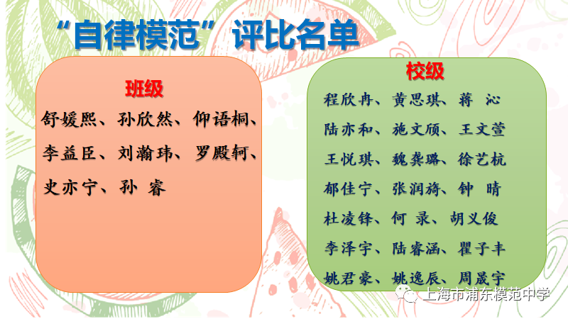 班级:陈洛悠、戴乐芊、顾津铭、胡思齐、廖天一、罗芳琳、裴煜洁、沈芯怡、王羽萁、许顾勤、陈浩泽、蒋余轩、李润安、林籽宬、朱三山