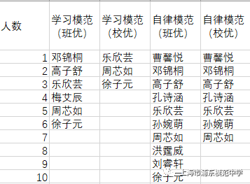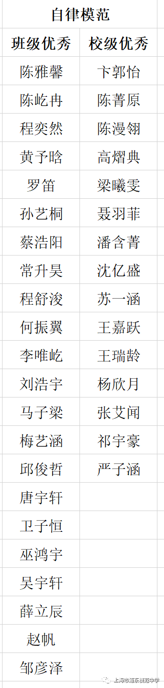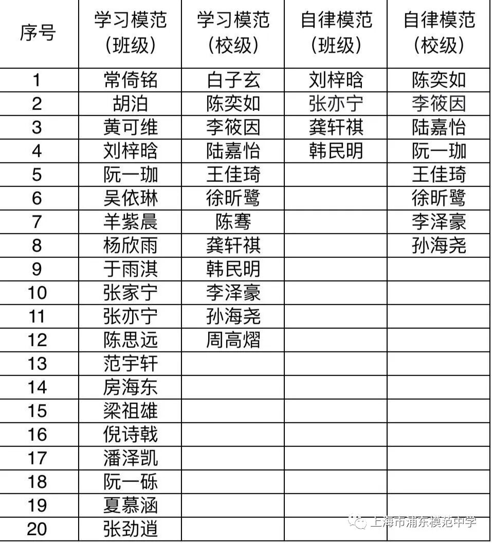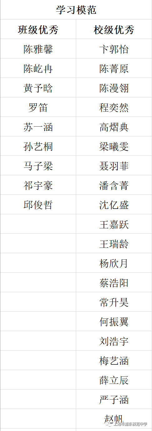 校级名单:陈琛、陈玥婷、刘梓琪、柳俏、唐歆予、姚辰、赵殷然、郭路易、魏家轩;