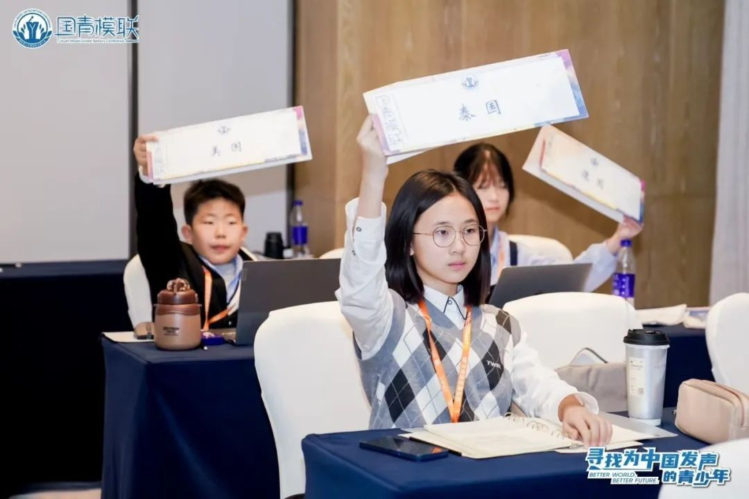 祈福英语实验学校22名同学化身为“小小外交官”,以“国家代表”的身份参与“联合国会议”,通过演讲来表明自己的“国家立场”,通过磋商谈判说服其他“国家外交官”认同自己的观点,最后通过投票表决来选出解决问题的最优决议案。