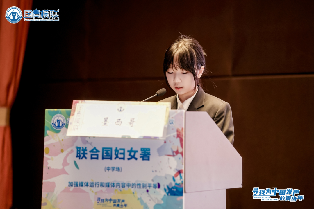 在“联合国妇女署(中文场)”中,担任墨西哥代表,以优秀表现被主席团评选为“最佳发言人”。