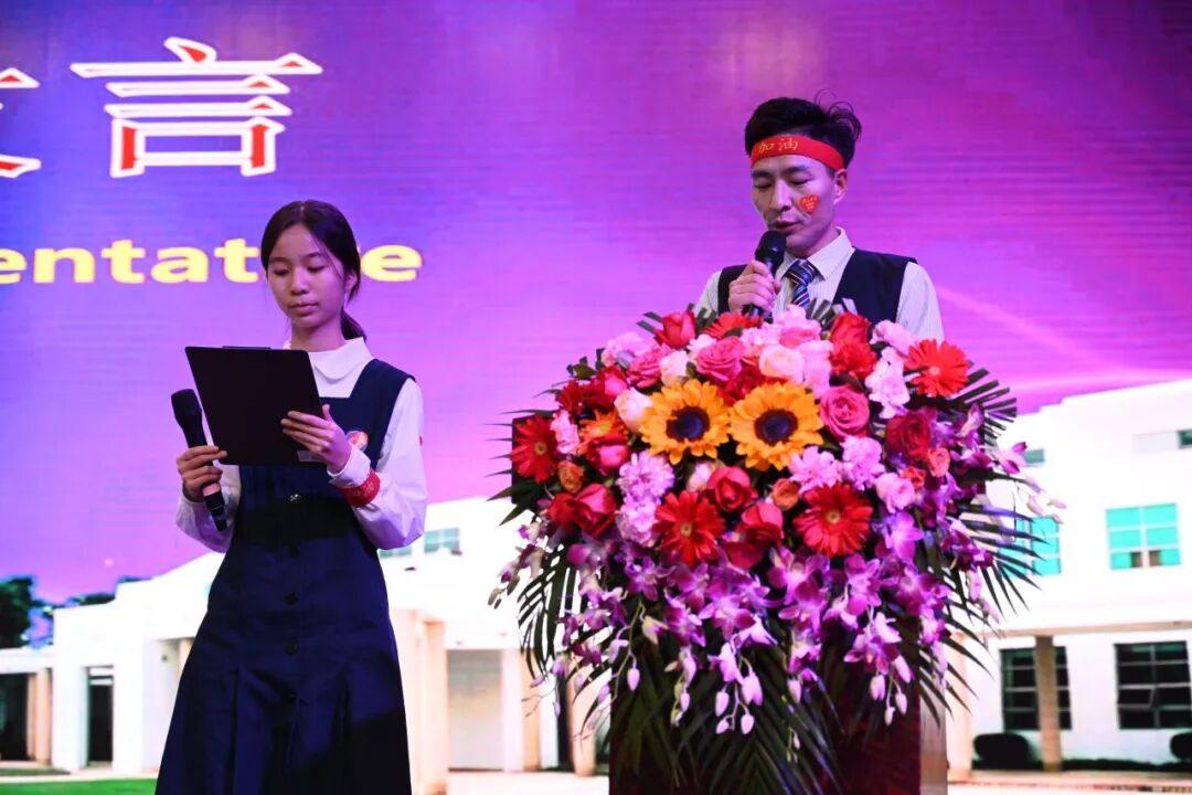 初三级长卢树参代表教师发言。他鼓励初三高三学子在逐梦征程中,比信心、比决心、比投入;在追光路上,坚定自我、强大自我,超越自我。细节成就梦想;心态决定成败;自信创造奇迹。同时他表示,初三高三教师团队必将竭尽全力,用自己的智慧和心血,照亮祈福学子前行的道路,日夜陪伴在祈福学子身边,为祈福学子答疑解惑,用耐心与鼓励,助力祈福学子金榜题名。