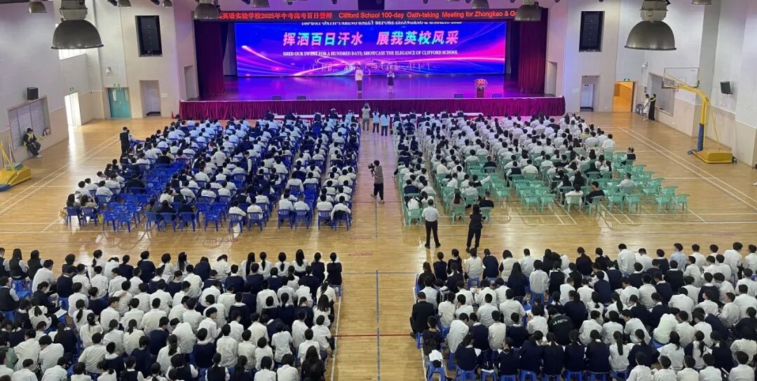 春暖南粤,花开祈福,一片生机。2025年2月28日,祈福英语实验学校举行“挥洒百日汗水,展我英校风采”2025届初三高三学子百日誓师大会。“六月沙场试锋芒,百日惊涛拍岸起”。百日誓师大会在庄严的国歌声中拉开帷幕,激昂雄壮的国歌吹响了新征程冲锋号。此时此刻,每一个祈福初三高三学子的心中都似有一团烈火在熊熊燃烧,那是对梦想的炽热渴望,是对未来的无畏憧憬,更是即将踏上百日冲刺征程的磅礴力量。
