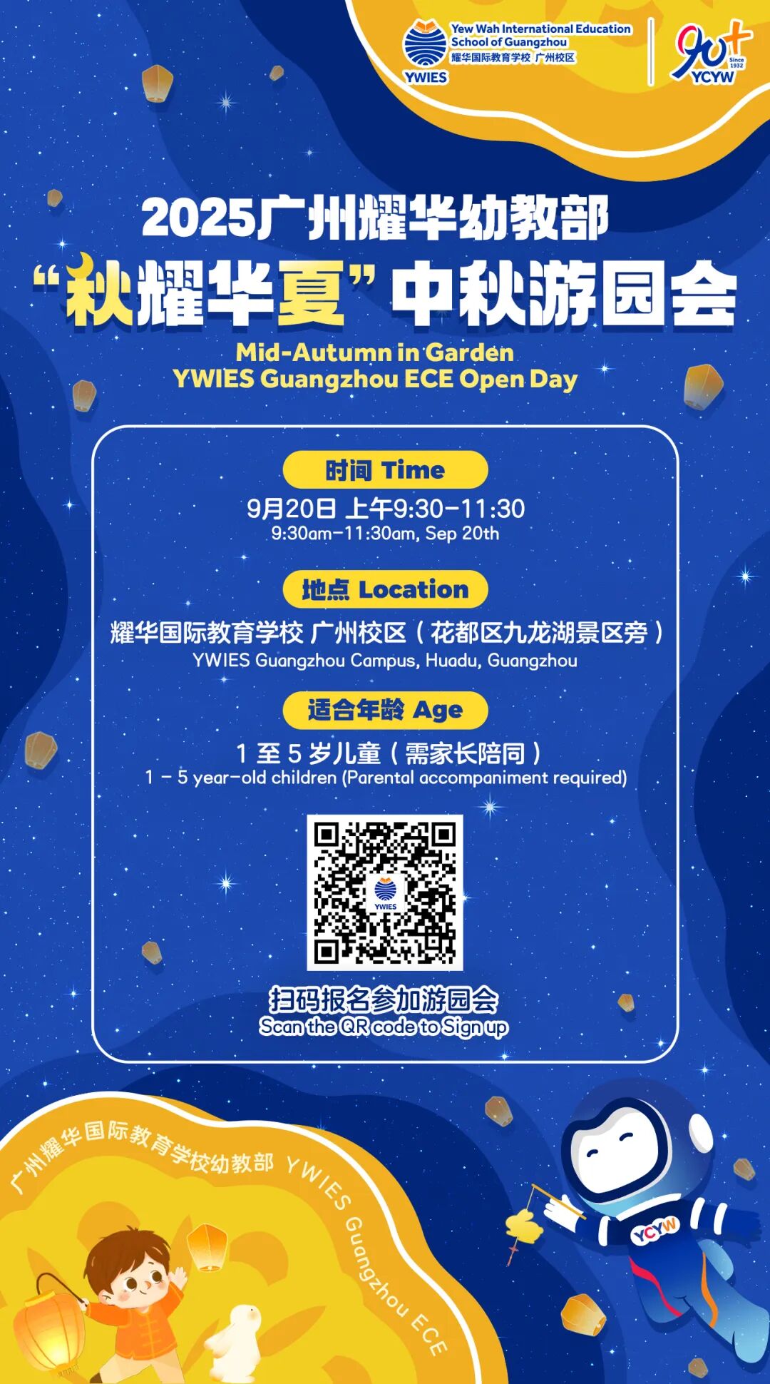 9月20日(周六)耀华幼教部将在校内举行“秋耀华夏”中秋游园会,诚邀各位校内以及校外1-5岁的小朋友参加!