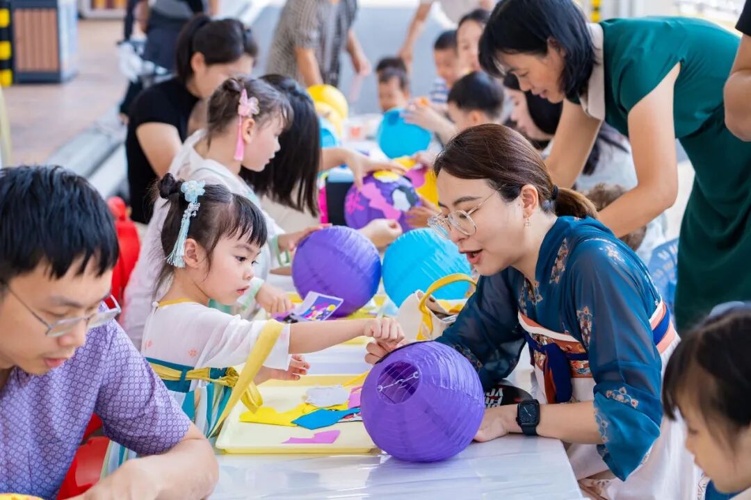 6大中秋游园活动——现场设置六大主题游园项目,包括画扇子、制作灯笼、超轻粘土月饼、点朱砂、猜灯谜、水笔书法等,每项活动都融入了中秋传统文化元素。