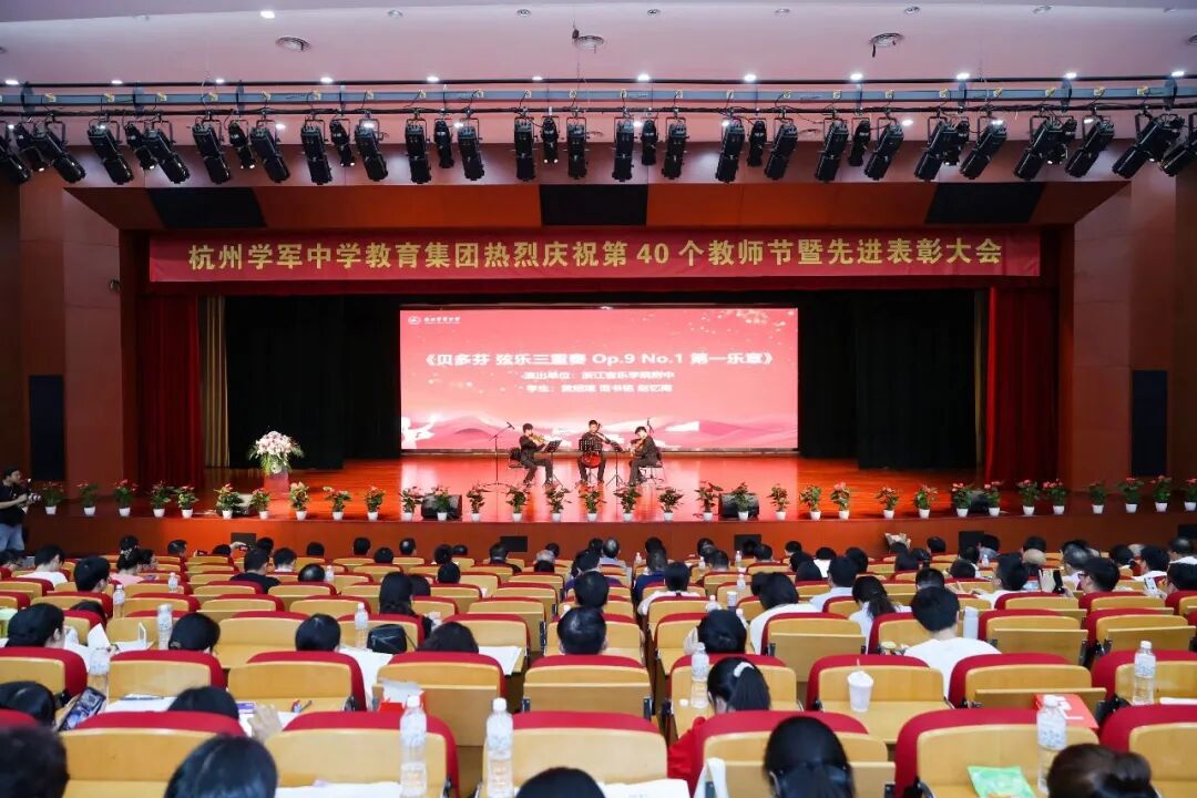 秋光为序,展阅新章。9月6日,杭州学军中学教育集团七大校区全体教师齐聚紫金港校区千人报告厅,隆重庆祝第40个教师节。