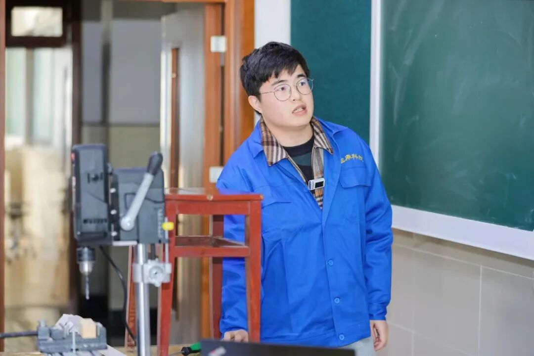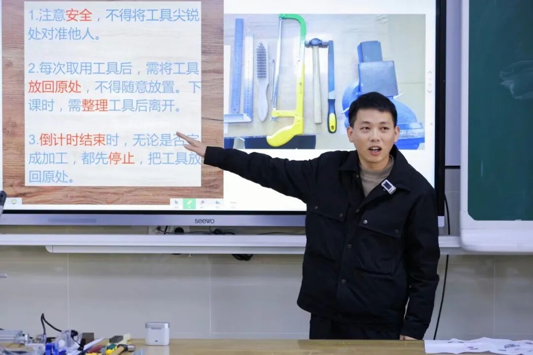 周老师通过紧固松动的凳腿引入角码的制作,引导学生亲自动手,实操划线、锯割、锉削、钻孔等重要的金工工艺,类比如何锯割空心管的难点,进一步提升同学们的物化能力。最后,周老师引导学生将制作完成的角码用来紧固松动的凳腿,实现教学的首尾呼应,帮助学生做到学以致用。