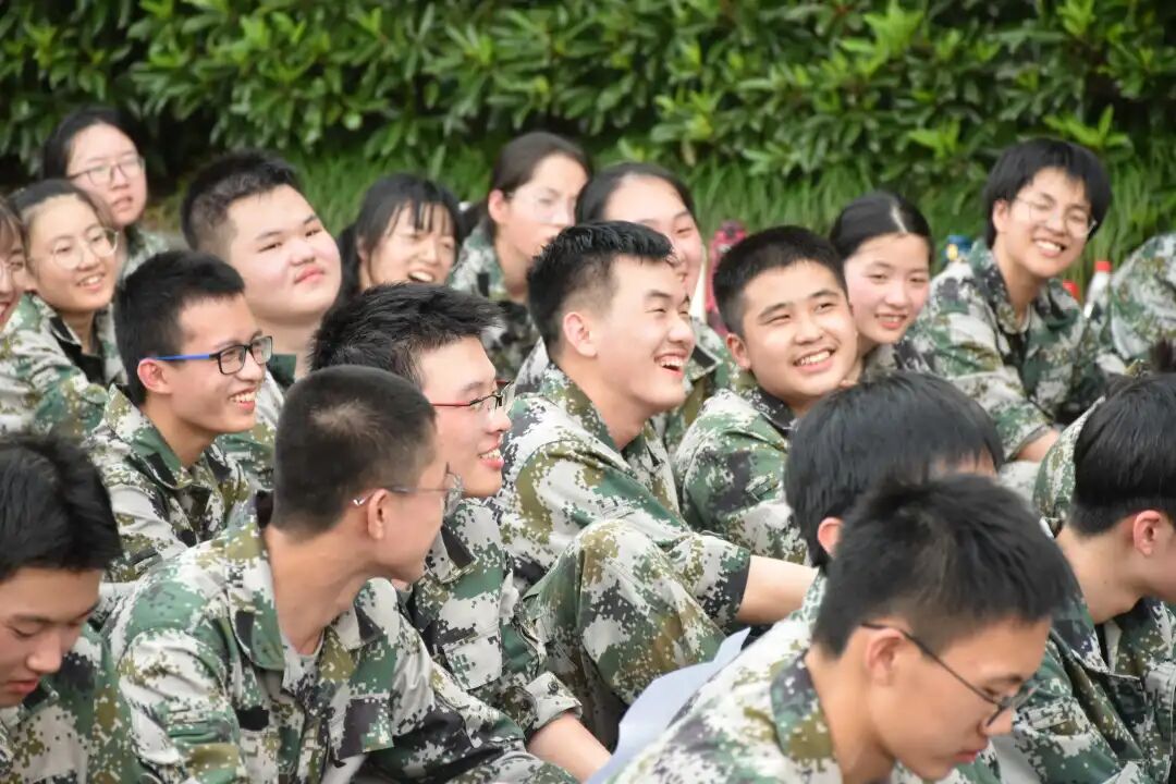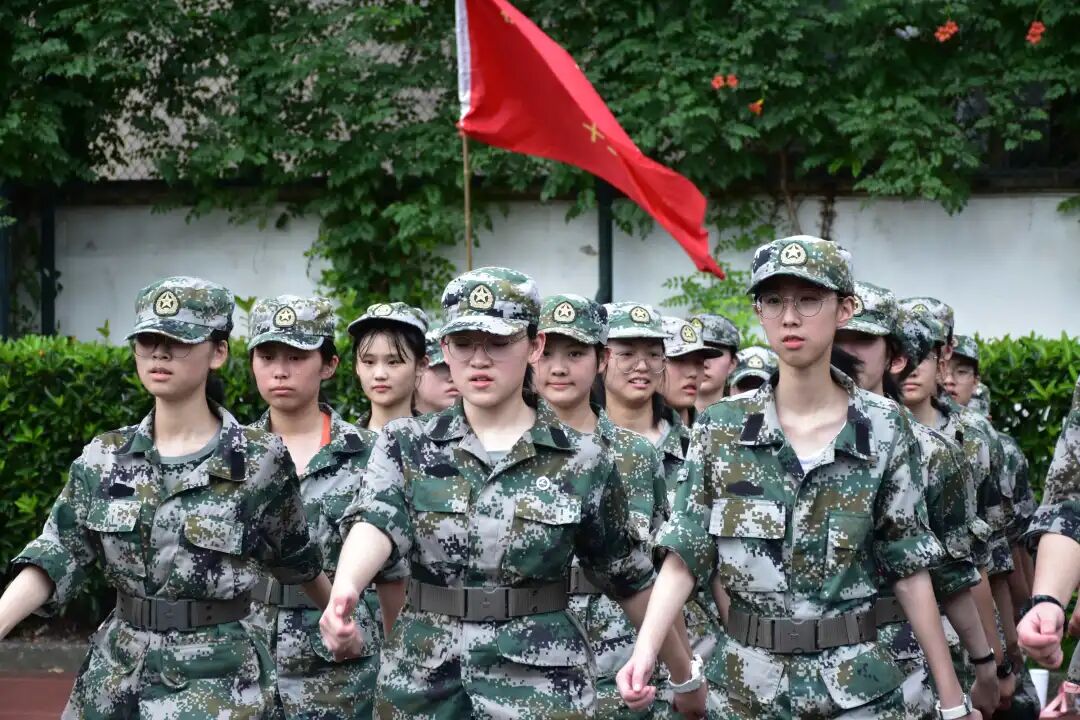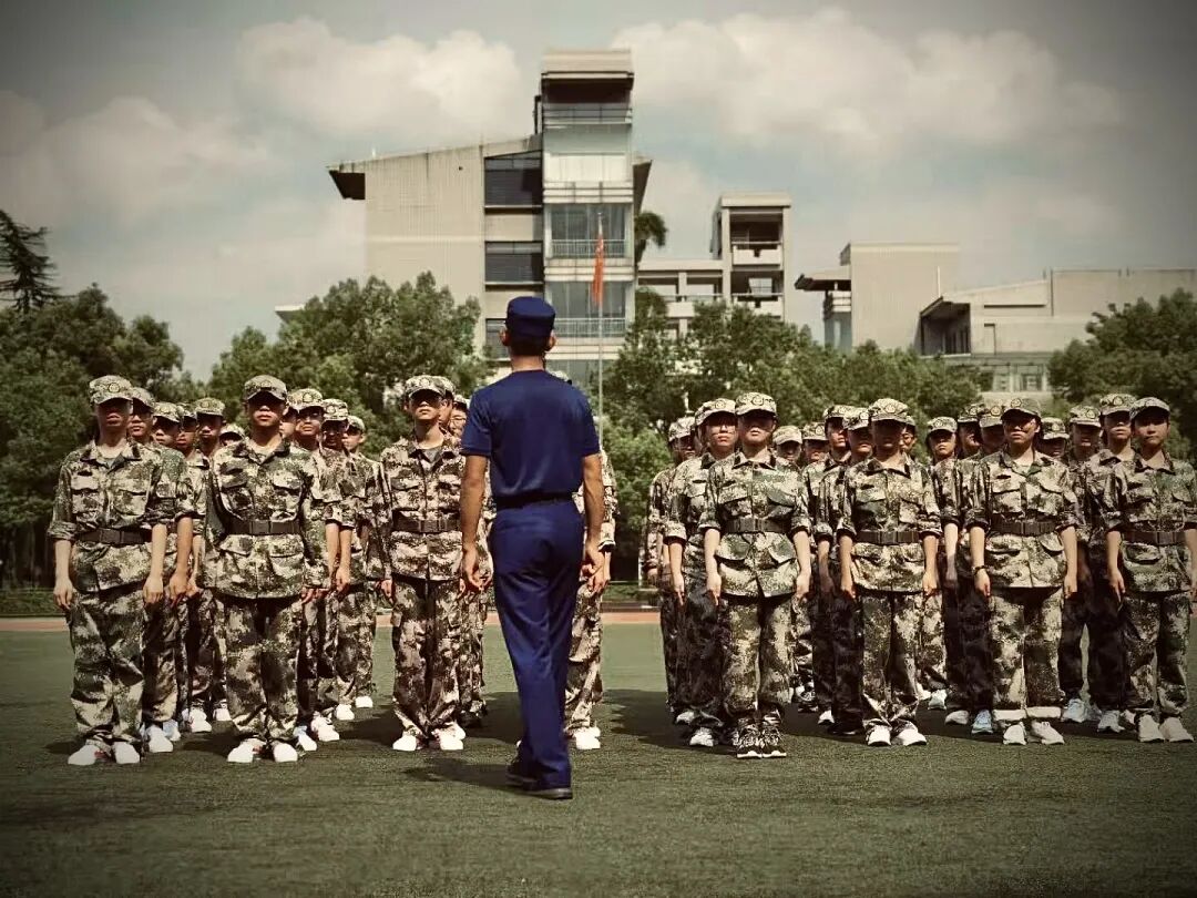 军训是简单的立正、稍息、齐步走、正步走?不,君不见炎炎烈日下,我们站着笔挺的军姿,汗流浃背?君不见为了正步走的统一协调,我们用水平线检验抬腿高度?君不见淅沥夜雨中,一声号令,我们义无反顾地快速集合?君不见我们静悄悄聆听教导员讲述的革命故事,观看爱国主义教育视频?君不见夜幕里,我们比拼的歌声一波高过一波,宁可嗓子喊沙哑也要撑起集体的士气?