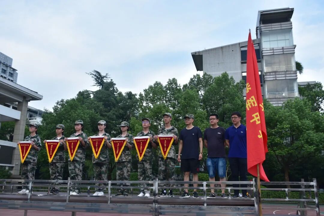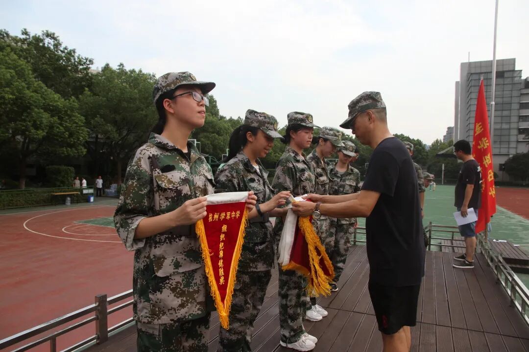 军训期间,值班老师对各连进行了内务和纪律打分,开展了阶段性优胜评比。张同华副校长为优秀者颁发流动红旗。
