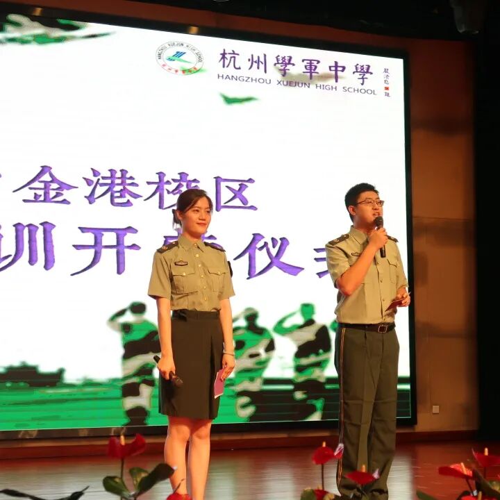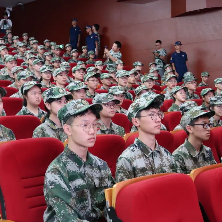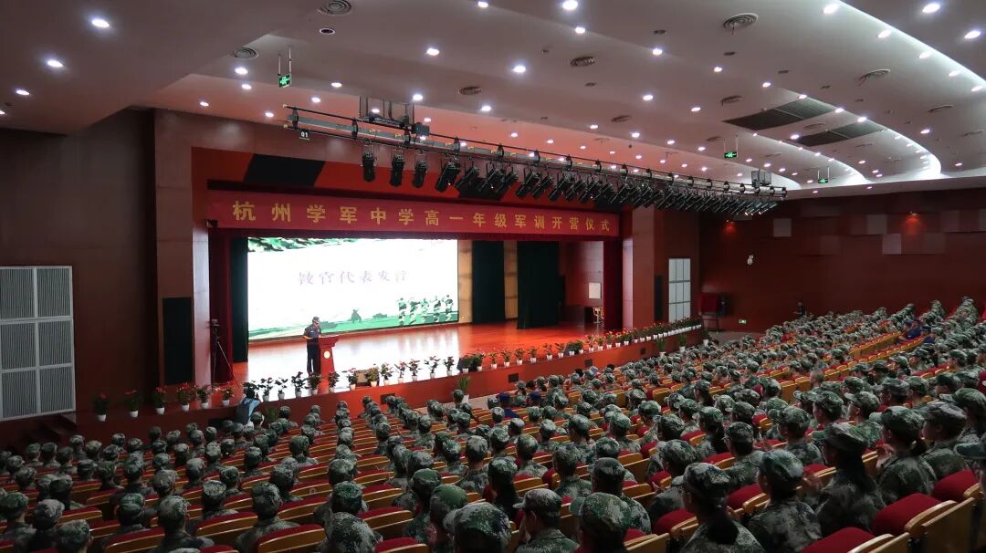 8月23日,学军中学紫金港校区2021级新生军训开营仪式在千人报告厅隆重举行。浙江消防训保支队三级指挥员黄明洋同志,浙江消防新训大队三级消防士方杰龙同志,浙江消防新训大队三级消防士倪嘉悦同志,杭州学军中学党委书记、校长邱月灵老师,学军中学党委副书记纪委书记李声琴老师,学军中学副校长余林老师,学军中学副校长周洁老师以及高一年级中层领导和全体参训教官、同学、教师出席了本次开营仪式。仪式由团委书记李方正老师和赵仕蕾老师主持。