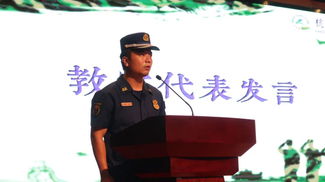 “国无防不立,民无兵不安”,军训除了能锻造同学们的刚强意志和吃苦精神,对于增强国防力量也意义重大。正如教官代表黄明洋同志所言,“军训工作是对广大学生进行国防教育和培养大家爱国意识的一条重要途径,能为我国国防后备力量建设储备高素质兵员做好充分的预备工作”,因此,认真军训不仅是对自己的锤炼,更是对祖国的忠诚。黄明洋同志也代表全体教官做出庄严承诺:“遵守规定,听从管理;言传身教、以身作则;科学施训、灵活组训;积极配合,虚心请教。”严格自律的教官们便是同学们在军训中最好的榜样!