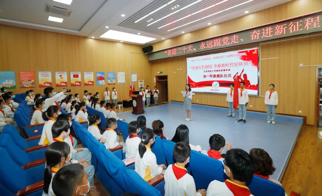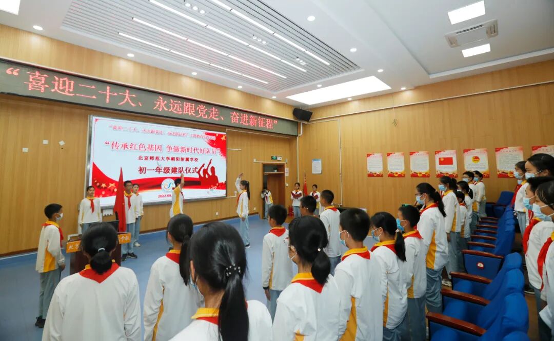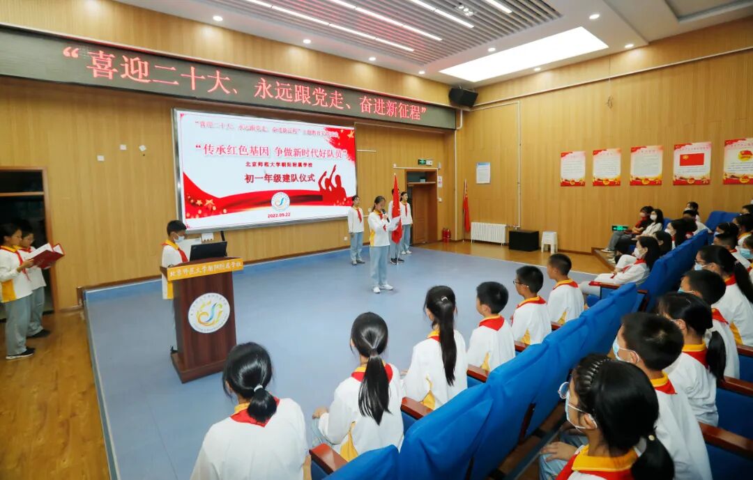 9月22日,北师大朝阳附属学校举行“传承红色基因 争做新时代好队员”初一建队仪式。大队辅导员王韫琦主持活动。