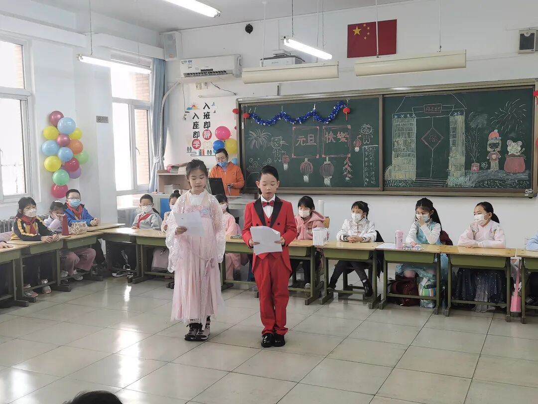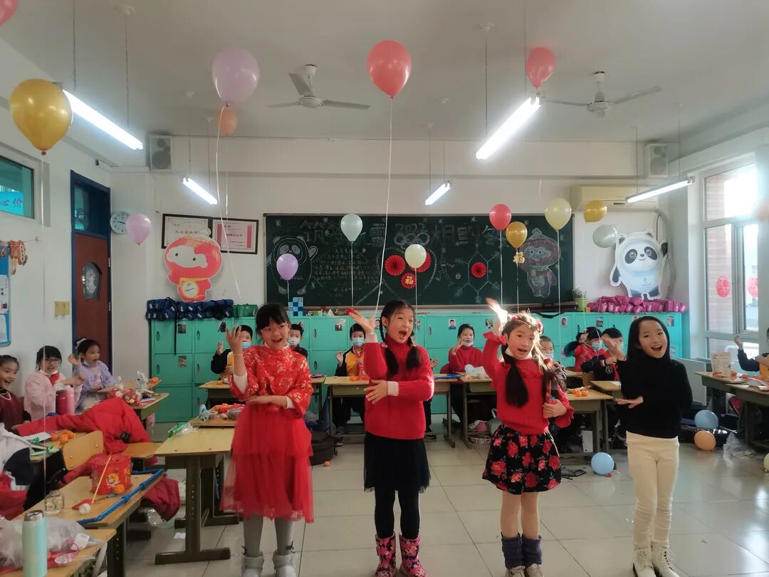 老师们和学生们一起把班级联欢会场装扮得格外迷人。窗户上、黑板上都挂上了五颜六色的彩带和气球,充满了浓浓的节日气氛。班级联欢向大家展示了精彩纷呈的节目。有乐器演奏、歌曲演唱,更有舞蹈、相声、故事、啦啦操等令人耳目一新的表演,热烈的掌声和欢笑声此起彼伏。