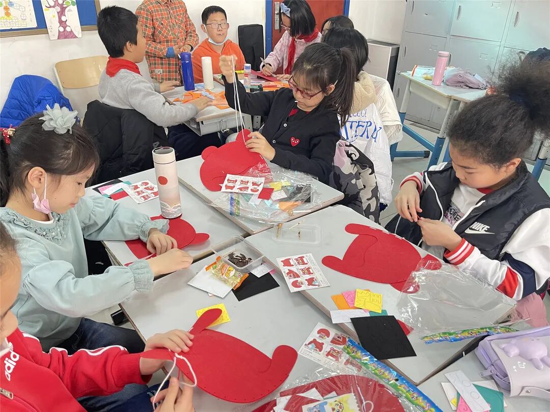 欢声笑语中,各年级还开展了以“传承劳动精神 弘扬传统美德”为主题的劳动体验活动。一年级进行了五谷画手工制作活动;二年级学生创意十足,制作豆类装裱;三年级学生以庆元旦迎新年欢庆气氛为主题,进行了窗花制作;四年级的同学们进行灯笼制作和染色;五年级学生编制中国结,把新年的祝福送给老师和身边的同学。