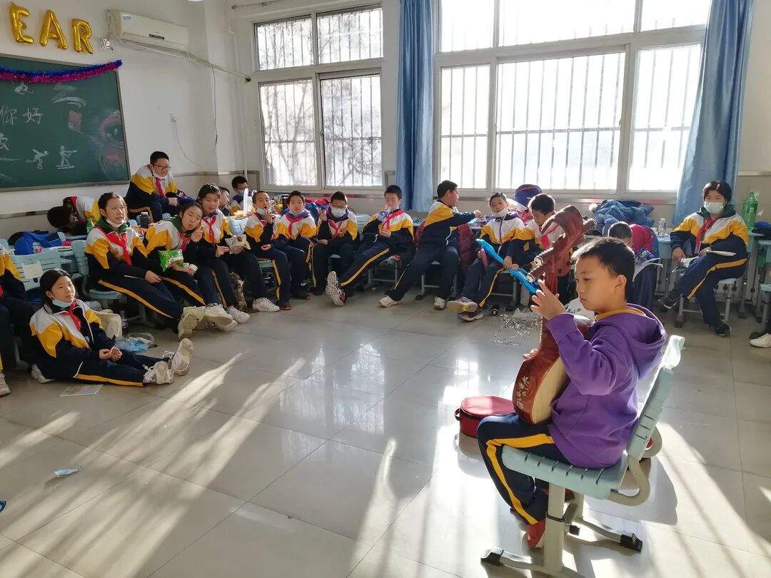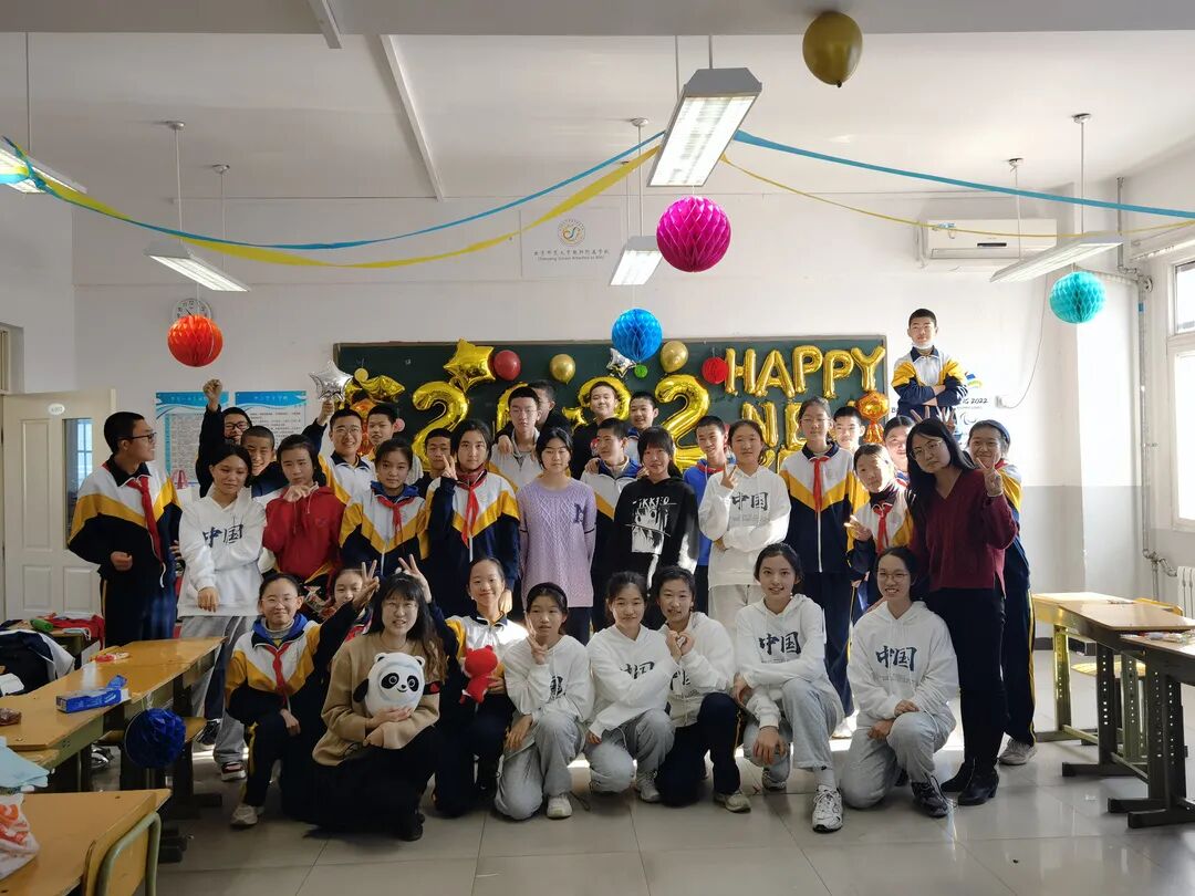 本次新年联欢的欢声笑语不仅飘荡在阳光大厅,还洋溢在各班之中。8点30至10点30,六至八年级师生在装点一新的教室里进行着别开生面的元旦联欢。