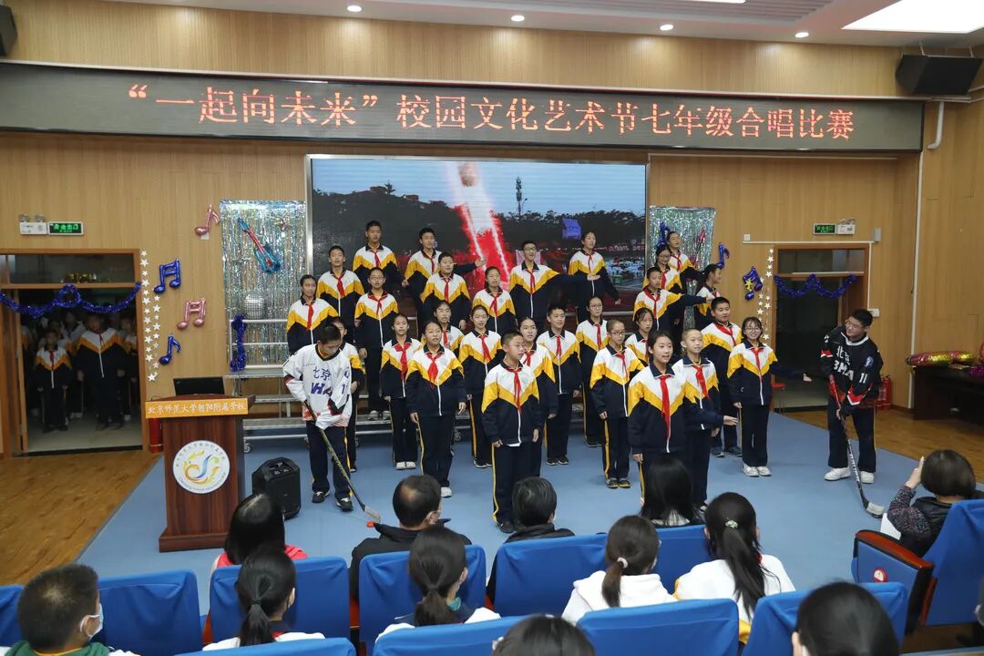 本届艺术节自12月1日起征集作品,于12月22日至24日分别举办了六年级歌咏比赛、七年级合唱比赛和八年级舞蹈比赛。各年级组精心筹备,班集体全力以赴,师生们绽放生命光彩,将冬奥文化和新时代少年的蓬勃朝气完美结合,呈现了一场场精彩的表演。