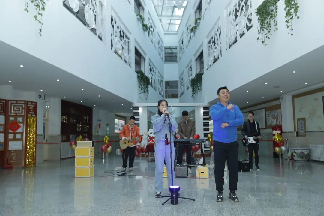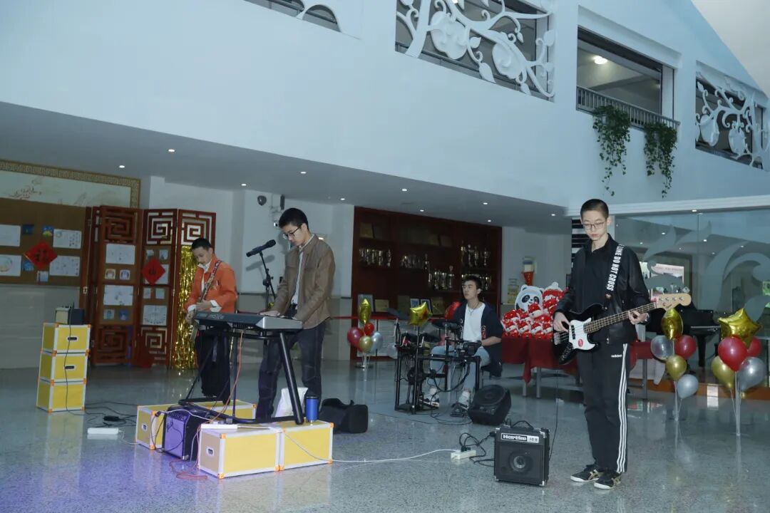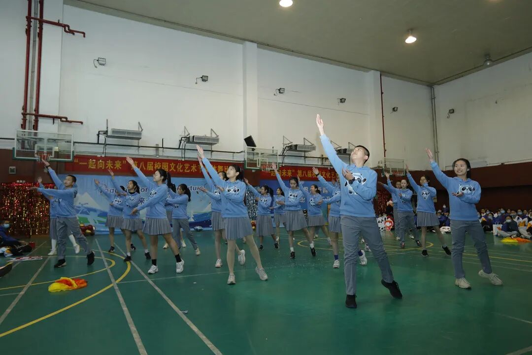 随着音乐响起,抓人眼球的一个个节目在阳光大厅闪亮登场。学生电声乐队的精彩演出为全校新年联欢拉开帷幕、点燃气氛,该乐队节目由初三、初二学生自主创编,师生们共同演唱了《海阔天空》和《一起向未来》,淋漓尽致地展现了师生对冬奥会即将到来的期待与喜悦,这份年轻热忱的赤子之心,只为献给繁荣富强的伟大祖国。